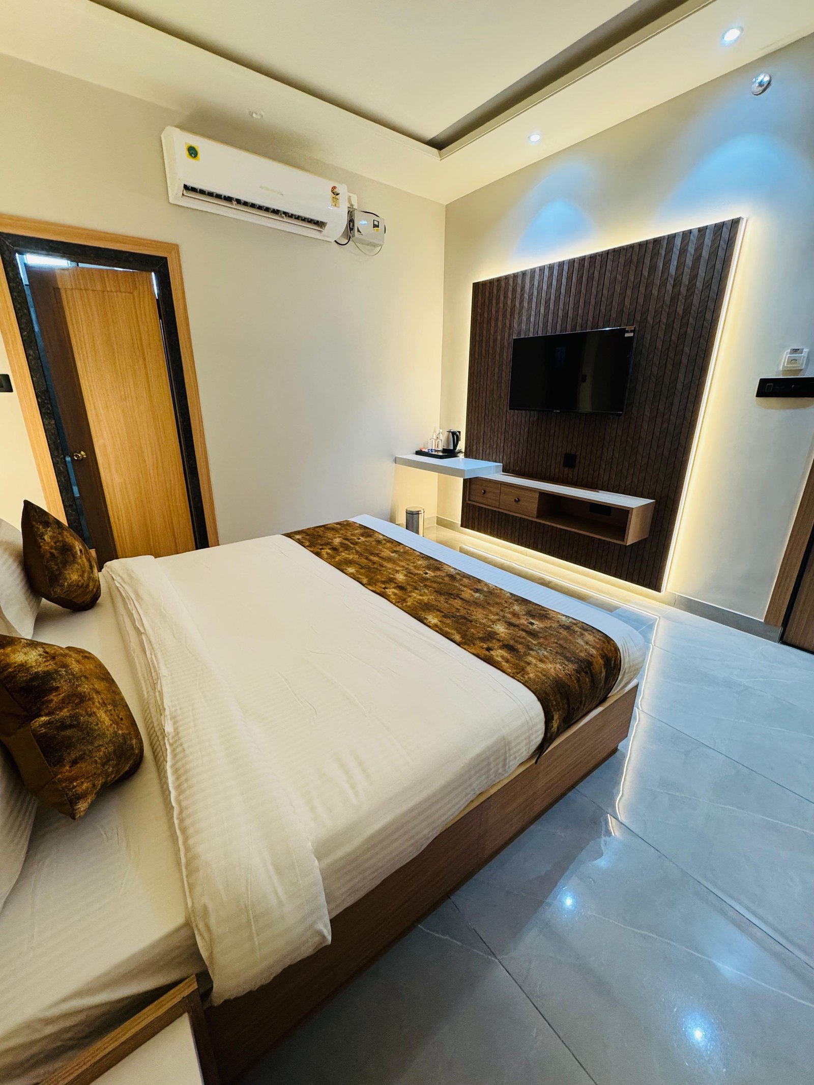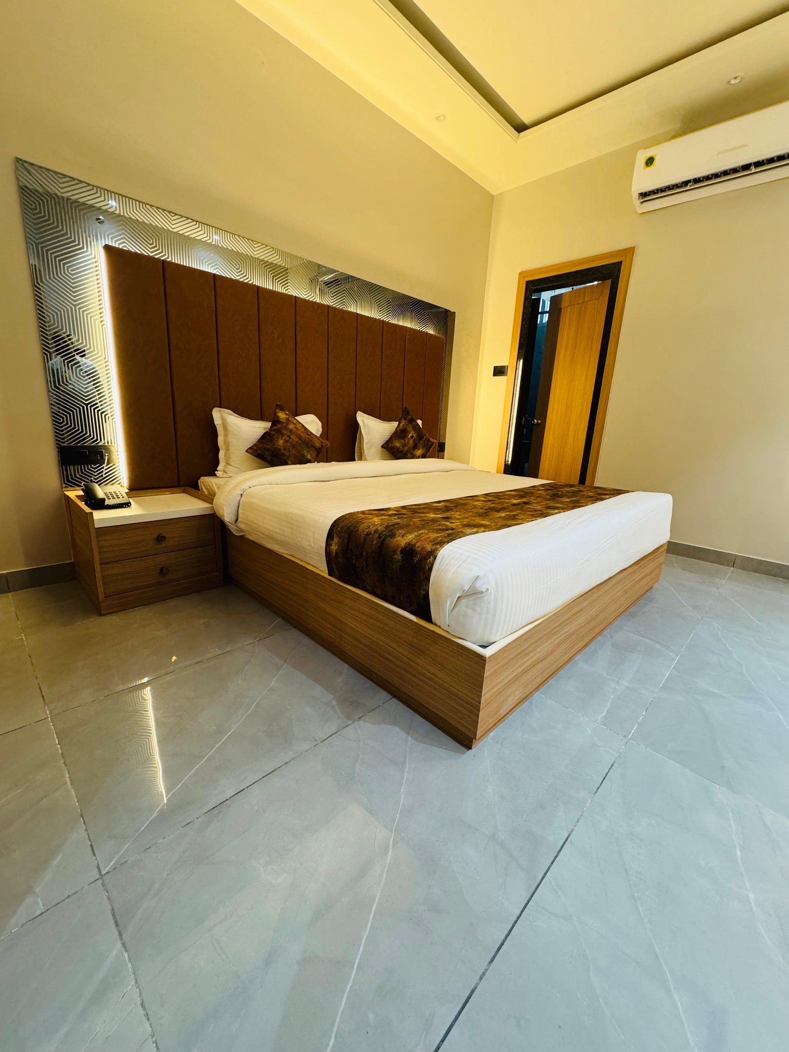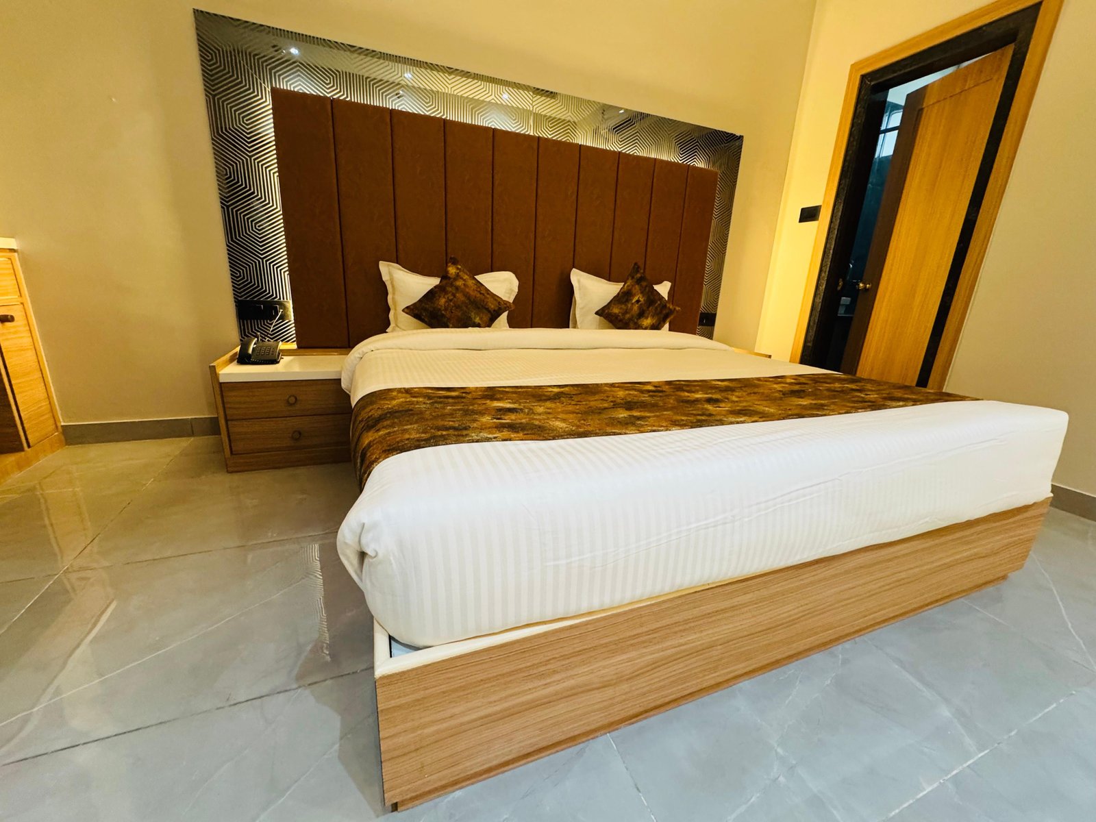 Our Suite Room (Single Occupancy) is ideal for solo business travelers and guests who prefer a spacious, private, and comfortable environment. The room features a premium king-size bed, elegant interiors, modern lighting, and a stylish designer headboard. With high-quality furnishings and a peaceful ambiance, it ensures a relaxing stay for individual guests.